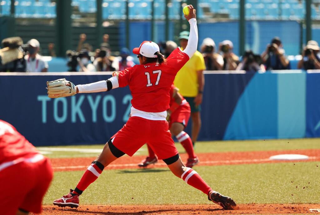 พิชเชอร์ในซอฟท์บอลจะขว้างลูกโดยเหวี่ยงแขนจากด้านล่างขึ้นด้านหน้า การหมุนข้อมือและการควบคุมความเร็วมีผลอย่างมาก